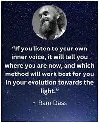 “If you listen to your own inner voice, it will tell you where you are now, and which method will work best for you in your evolution towards the light. The quieter you become the more you can hear”