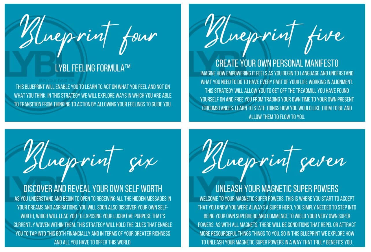 This phase of the program Is called ‘Your Actions’. This section will aid you in understanding the physical actions you need to take in order to create the life circumstances and changes that breed your very own version of your best life. This is where you obtain your sense of satisfaction, success and fulfilment towards all you do. Your action sections of the program are made up of the following 4 Blueprints: